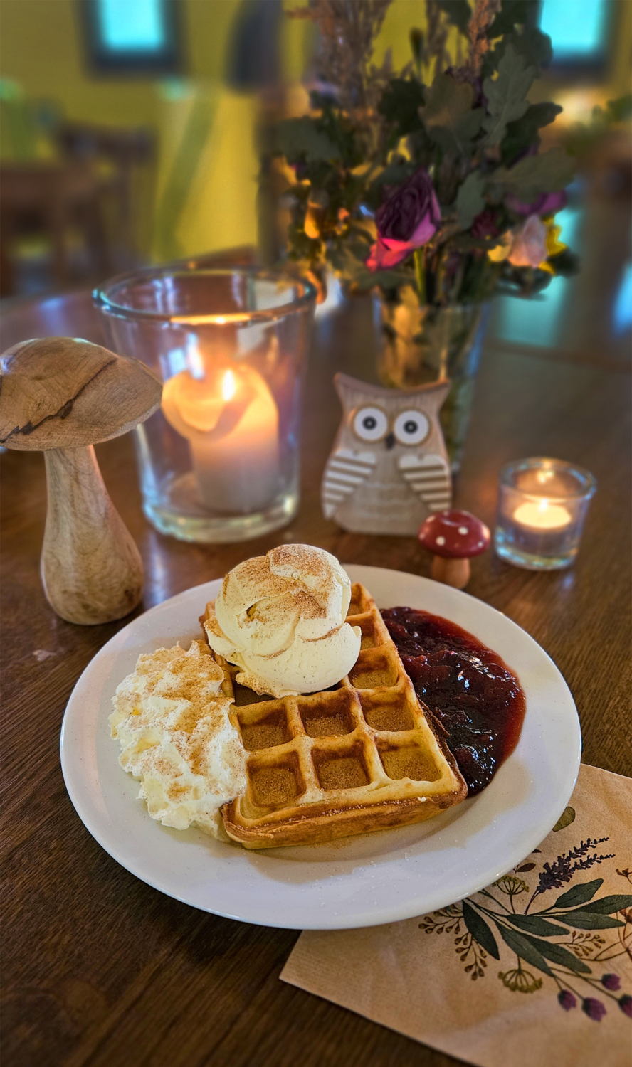Ob naturnah in unserem Biergarten oder gemütlich am Ofen im Innenraum; der Wilhelmsteg ist nicht nur wegen seiner Waffeln einen Ausflug wert!